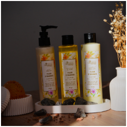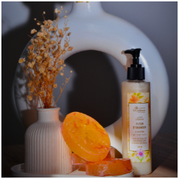Pack Fleur d'Orange et Safran : Un ensemble de soins complets comprenant un shampoing, une crème de corps et un gel douche, tous enrichis de l'arôme délicat de la fleur d'orange et du safran pour une expérience sensorielle unique.